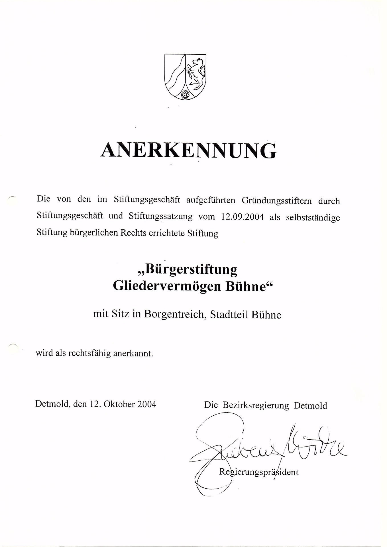 Ein bisschen stolz sind wir natürlich auch darüber, dass wir nach unserem Kenntnisstand die erste Bürgerstiftung im Kreis Höxter sind, die eine Stiftungsurkunde ausgehändigt bekommt. Wie in den Tageszeitungen nachzulesen war, beabsichtigt man auch in Warburg eine Bürgerstiftung ins Leben zu rufen.