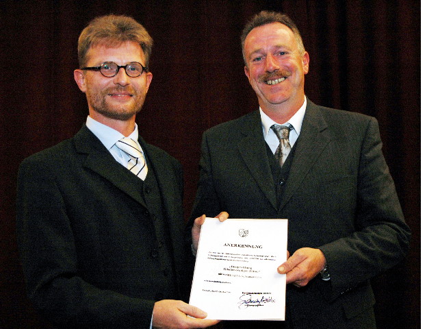 Der damalige Detmolder Regierungspräsident Andreas Wiebe übergab am 12. Oktober 2004 die Anerkennungsurkunde an den langjährigen Ortsvorsteher Hans-Günter Fels.